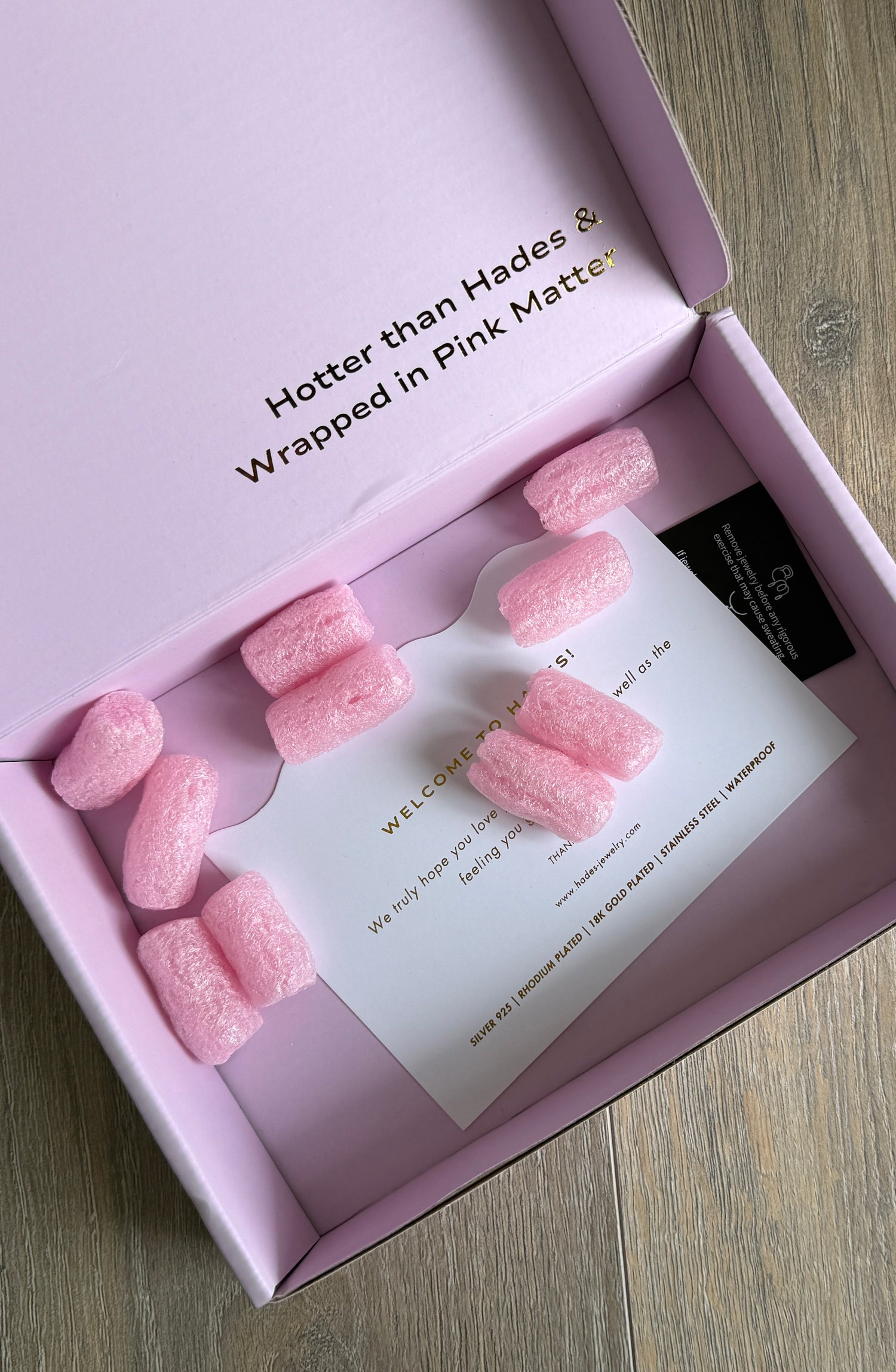 "Your order is here, hotter than Hades and wrapped in pink matter."